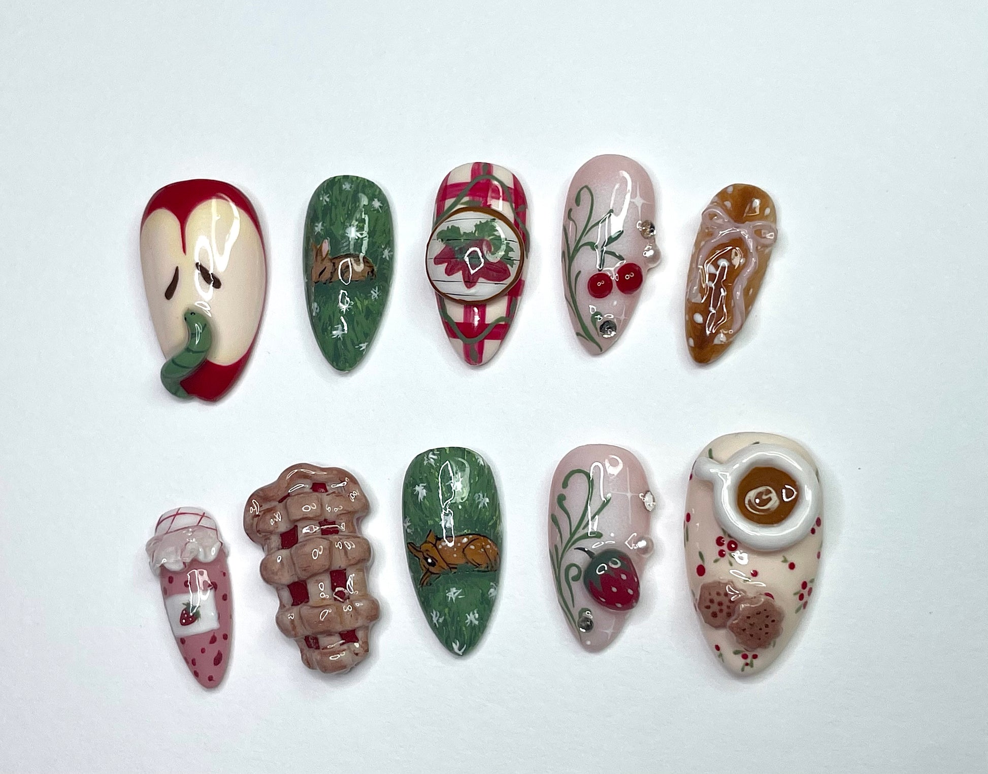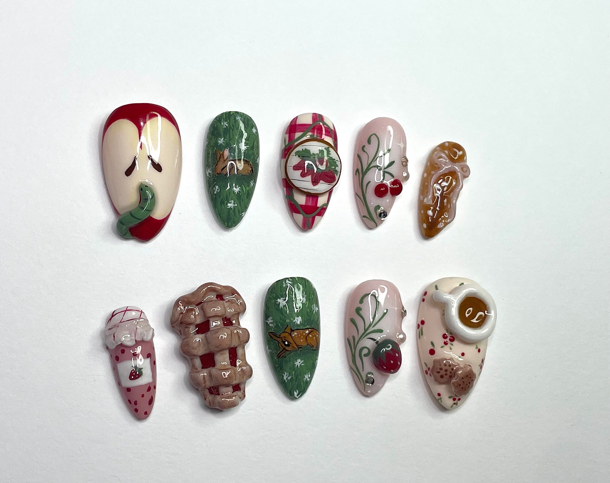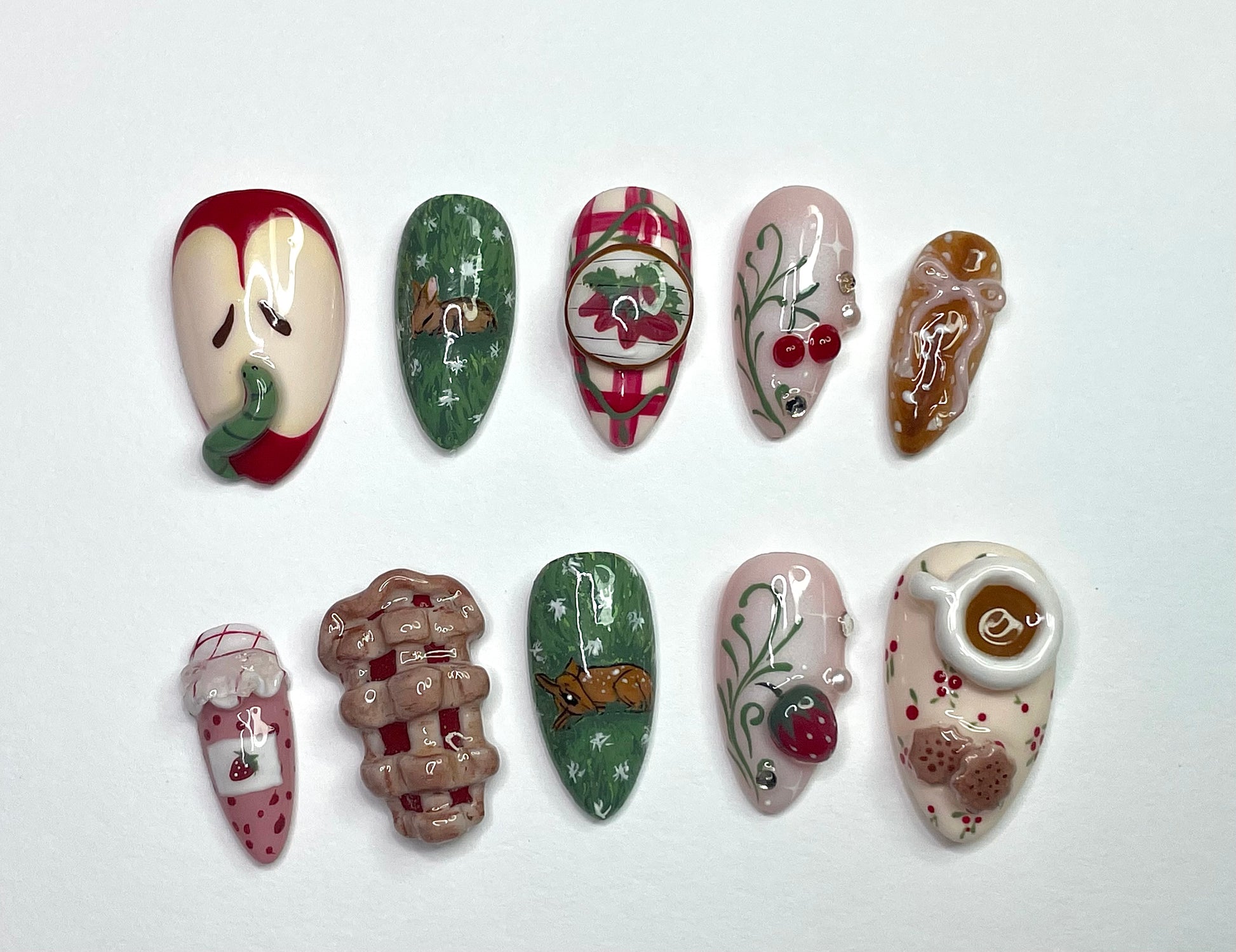 Image is in nail length “Almond medium”. Some nail art maybe slightly different due to being “handpainted” but overall will be the same as shown.