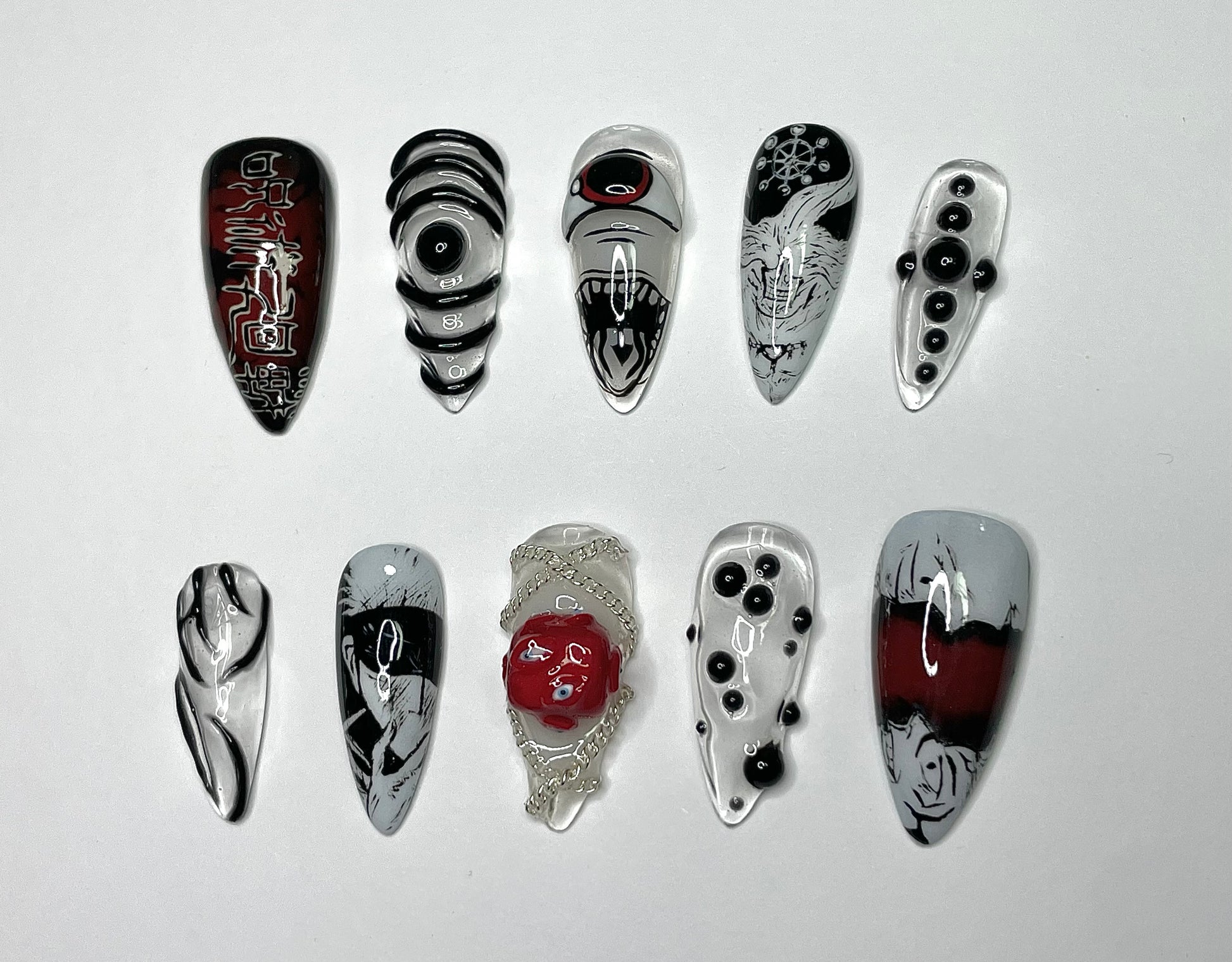 Image is in nail length “Stiletto medium”. Some nail art maybe slightly different due to being “handpainted” but overall will be the same as shown.