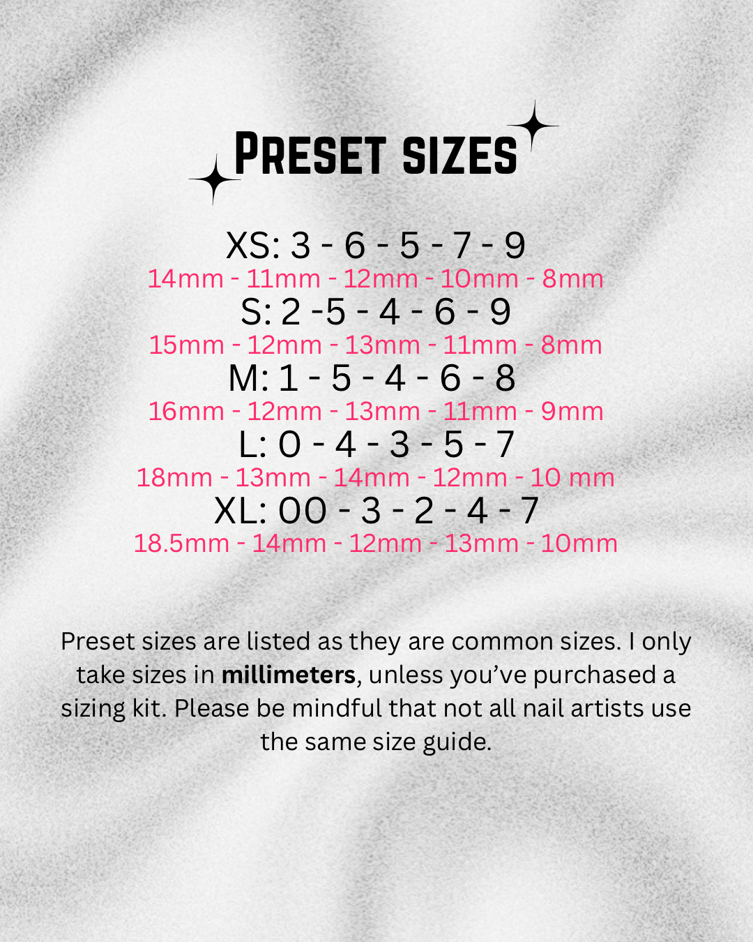 Image is in nail length “Almond Short”. Some nail art maybe slightly different due to being “handpainted” but overall will be the same as shown.