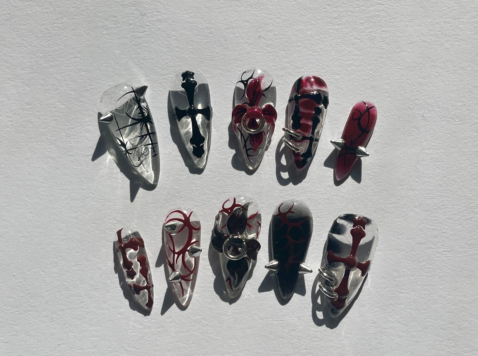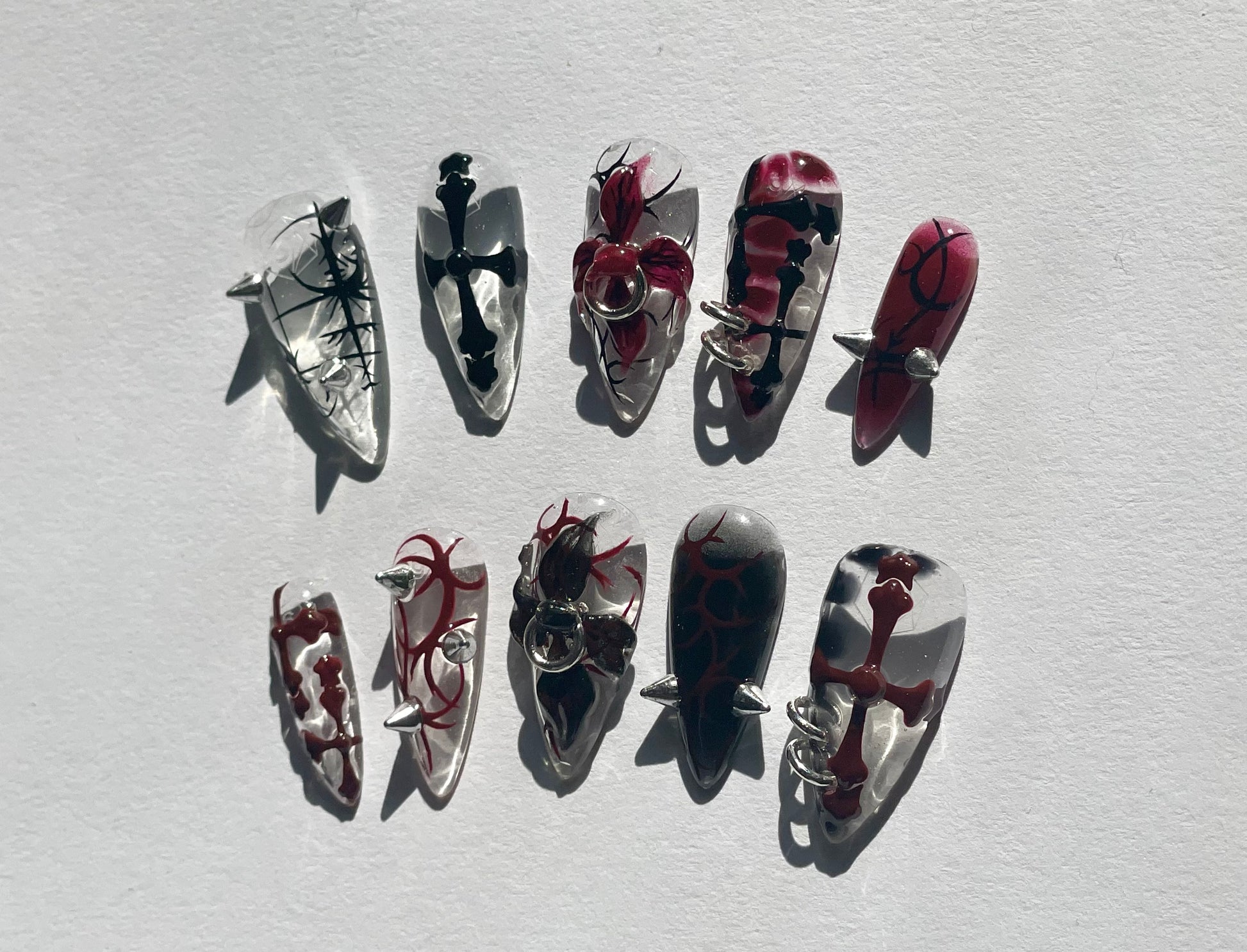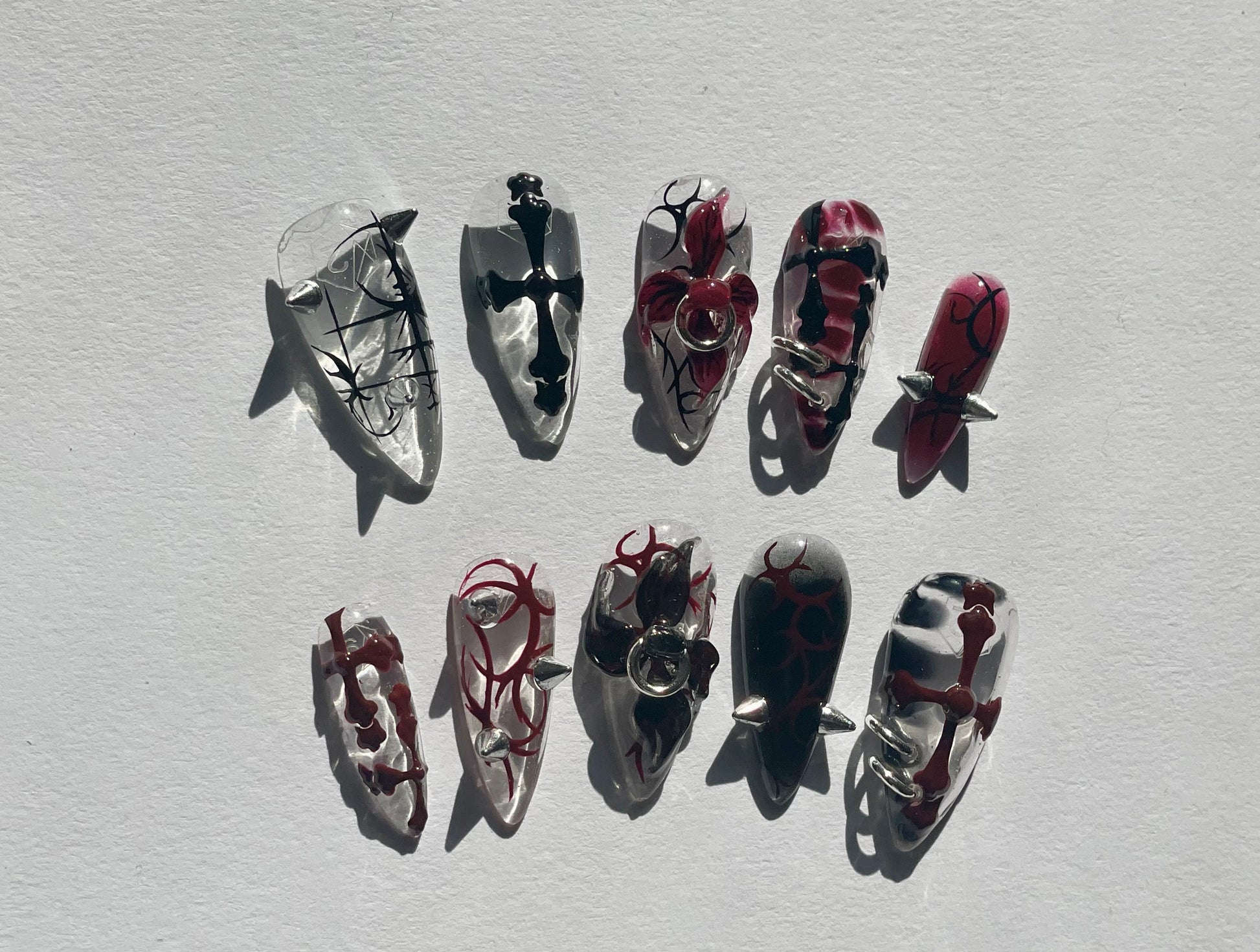 Image is in nail length “Stiletto medium”. Some nail art maybe slightly different due to being “handpainted” but overall will be the same as shown.
